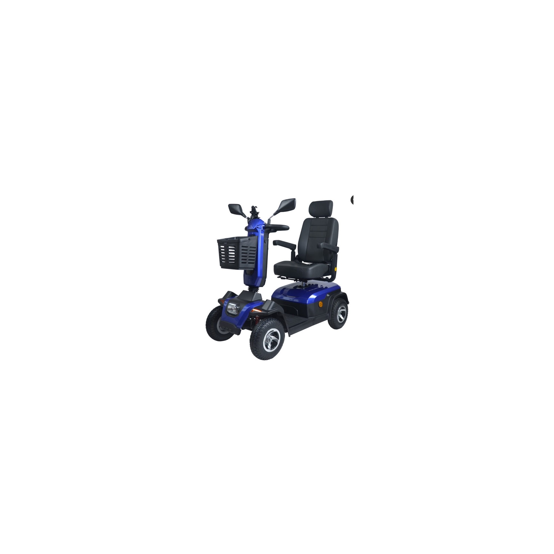 Su motor de 700W le permitirá alcanzar una velocidad máxima de hasta 15 km/h y sus dos baterías de 55Ah le proporcionarán una autonomía máxima de 50 kilómetros. Dispone de un sistema de freno electromagnético inteligente que junto a las luces e intermitentes delanteros y traseros LED El asiento modelo “Capitán” dispone de respaldo alto, que se puede regular en altura, anchura y profundidad, es giratorio en 360 grados, reclinable y abatible. Tanto los reposabrazos como los reposacabezas también son abatibles y ajustables en altura y en anchura al usuario, dispone de tecnología Bluetooth, que le permitirá escuchar su música favorita y disponer de manos libres con su teléfono habitual, el cual nunca se quedará sin batería gracias a la toma USB disponible.